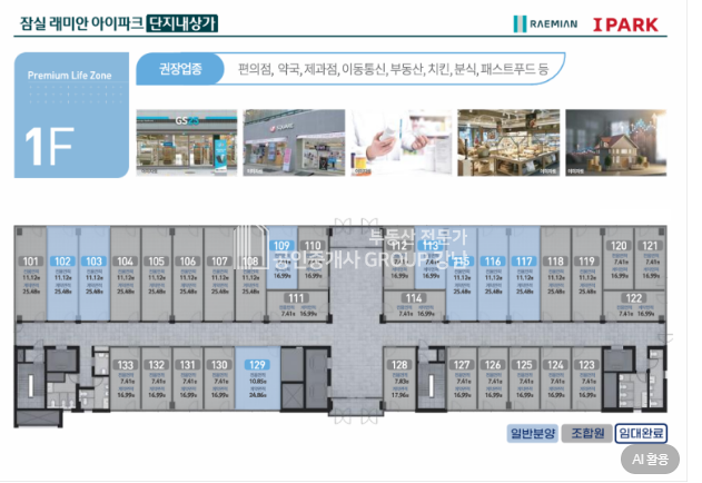 지상 1층: 편의점, 카페, 베이커리, 식음 업종